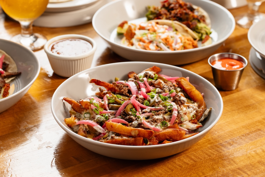 Santa Fe fries, ground beef, queso, pickled jalapeños, pickled onions, green onions, ranch